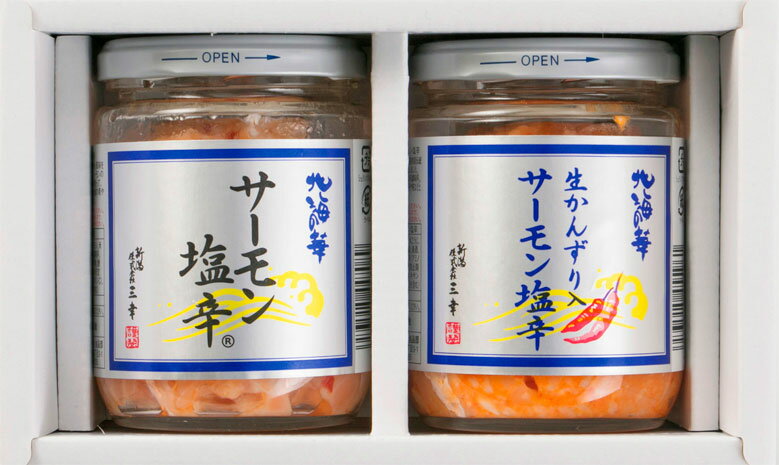 商品詳細 名称サーモン塩辛食べ比べセット 内容量(g)各200g 原材料 【サーモン塩辛】 アトランティックサーモン(輸入)、米こうじ、清酒、塩いくら、食塩、発酵調味料、たん白加水分解物(豚肉・大豆を含む)、唐辛子、砂糖/調味料(アミノ酸等)、酒精、酸味料、pH調整剤、トウガラシ抽出物、酸化防止剤(ビタミンC)、安定剤(キサンタン) 【生かんずり入サーモン塩辛】 アトランティックサーモン(輸入)、米こうじ、かんずり(唐辛子、糀、柚子、食塩)、 食塩、清酒、発酵調味料、たん白加水分解物(豚肉・大豆を含む)、砂糖/調味料(アミノ酸等)、酒精、酸味料、pH調整剤、酸化防止剤(ビタミンC)、トウガラシ抽出物、安定剤(キサンタン) 賞味期限出荷日から20日以内 アレルギー 【サーモン塩辛】いくら、さけ、大豆、豚肉 【かんずり入サーモン塩辛】さけ、豚肉、大豆 栄養成分表示(100gあたり) 【サーモン塩辛】 熱量:330kcal たんぱく質:11.1g 脂質:27.6g 炭水化物:9.2g 食塩相当量:3.8g <推定値> 【かんずり入サーモン塩辛】 熱量:234kcal たんぱく質:12.6g 脂質:15.1g 炭水化物:11.8g 食塩相当量:4.1g <推定値> 保存方法要冷蔵10℃以下 製造者株式会社三幸新潟県聖籠町位守町160-24 製造所新潟県新潟市東区寺山3-3-1大人気サーモン塩辛と姉妹品の生かんずり入サーモン塩辛のセットです。