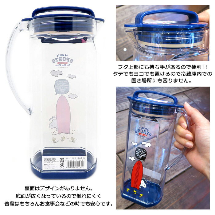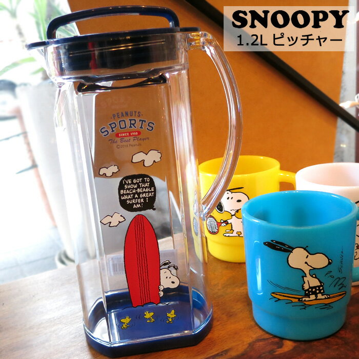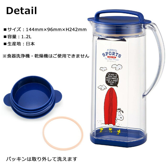 スヌーピー SNOOPY ピッチャー 冷水筒 保存容器 保管 1.2L 日本製 タテ置き ヨコ置き キッチン用品 キッチン雑貨 ネイビー サーフィン 麦茶入れ ジュース用 インスタ映え ダブルスリー