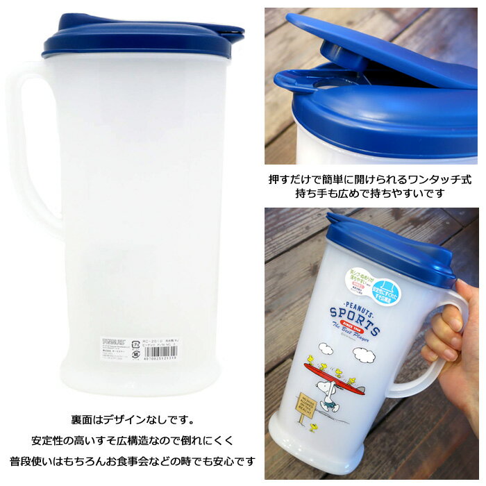 ピッチャー 冷水筒 スヌーピー ハンディプッシュ 2.0リットル K-1290 | スヌーピー ピッチャー スヌーピー 冷水筒 スヌーピー 水筒 ウォーター ピッチャー 水筒 プラスチック ピッチャー 水 プラスチック 水筒 冷蔵庫ポット 熱湯OK 岩崎工業 Lustroware