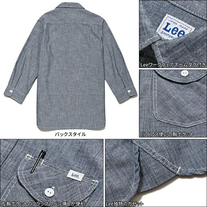 Lee シャンブレーシャツ LCS43004|ユニフォーム レディース 大きいサイズ 制服 おしゃれ 七分袖 作業着 飲食店 ワークシャツ シャツ 作業服 農作業 服 ユニホーム シャンブレーワークシャツ 白 ホワイト