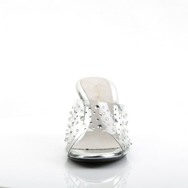 クリアサンダル Pleaser プリーザー ミュールサンダル アンクルストラップ ラインストーン付き ヒール低め シルバー 美脚 レディース靴 大きいサイズ 送料無料 BELLE-316 BEL316/S/RS◆取寄せ