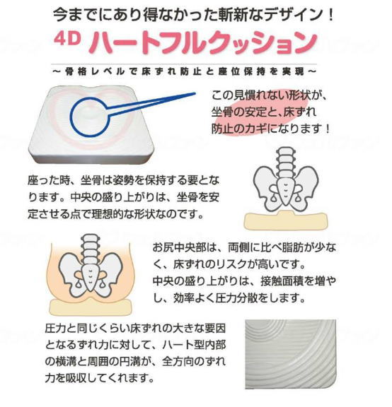 内カバー:コットン100% 滑り止め:PVC 商品説明 ・骨格レベルで床ずれ防止と座位保持を実現 坐骨を支えて骨盤安定と圧力分散。